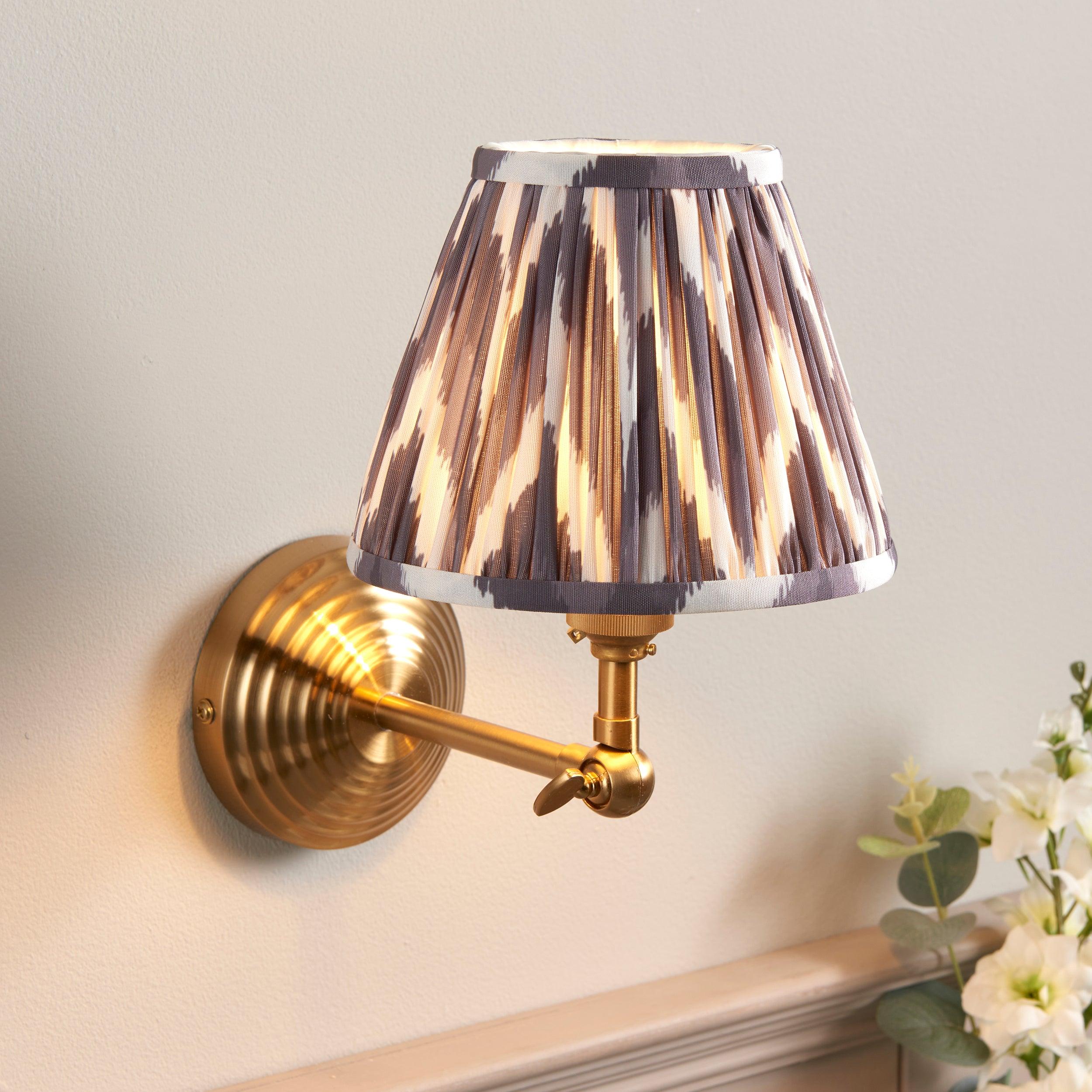 Burley Rechargeable Brass Wall Light & Ikat 16cm Pearl Grey ShadeEndon Lighting