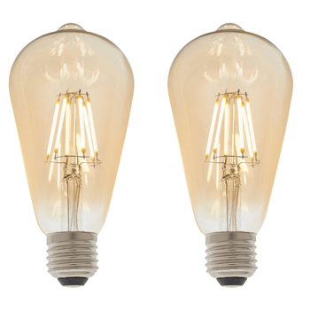 Sold out - 2 X E27 LED Filament Amber Pear Shaped Dimmable 6w Light Bulb