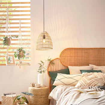 - Eglo Ayesgarth Black & Rattan Wicker Lamp Shade Ceiling Pendant