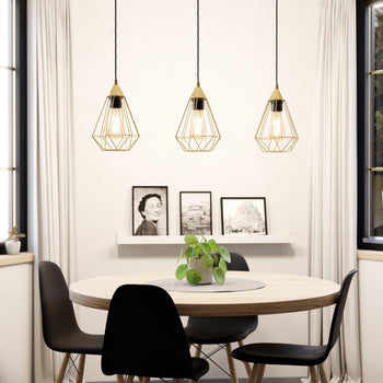 - Eglo Tarbes 3 Light Brass Wire Geometric Shaped Ceiling Pendant