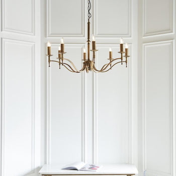 Sold out - Stanford 8 Light Antique Brass Chandelier - Beige Shades