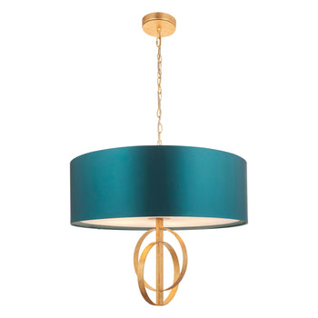 Sold out - Norfolk 3 Light Gold Leaf Ceiling Pendant - Large Teal Shade