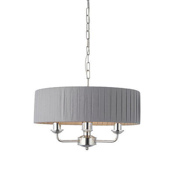 - Endon Highclere Bright Nickel 3 Light Pendant - Charcoal Pleated Shade