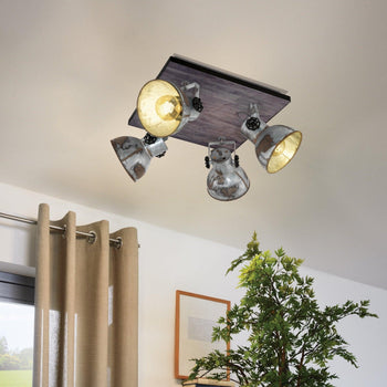 Sold out - Eglo Barnstaple Wood & Distressed Steel 4 Light Plate Spotlight