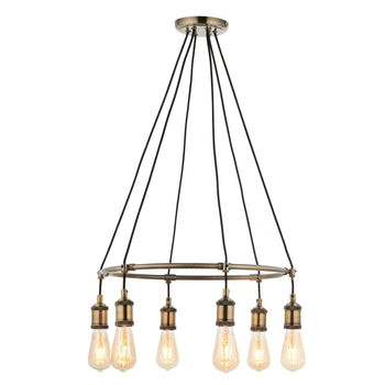 Sold out - Endon Hal 6 Light Antique Brass Pendant Ceiling Light