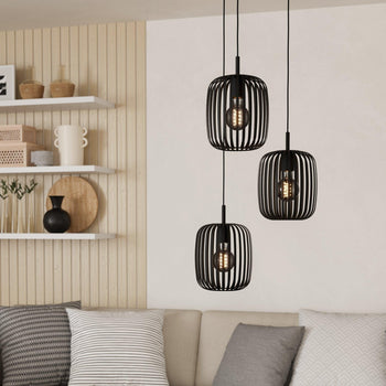 Sold out - Eglo Romazzina 3 Light Black Metal Caged Ceiling Pendant