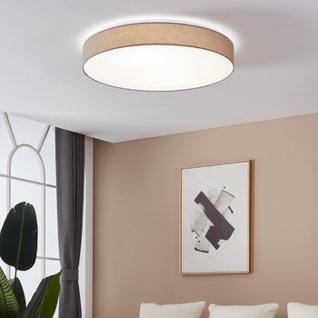 Sold out - Eglo Romao Flush Grey Linen LED Drum Shade - 57cm