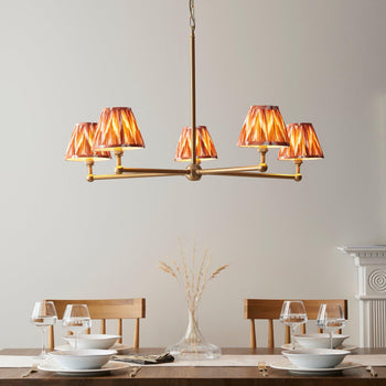 - Santiago Brass 5 Light Pendant Ceiling Light With Orange Zigzag 16cm Shades