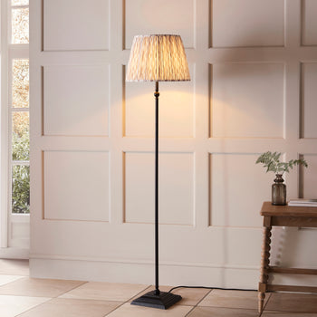 - Lille Black Floor Lamp & Neutral Ikat 40cm Shade