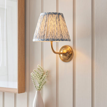 Sold out - Obelisk Arc Brass Wall Light & Ikat 16cm Marlin Blue Shade