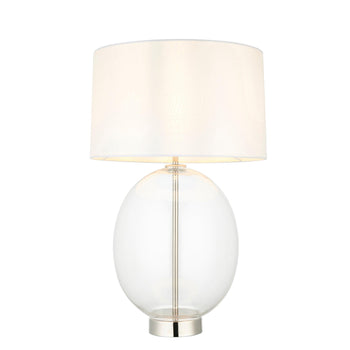 - Linear Nickel & Oval Glass Touch Table Lamp - White Shade