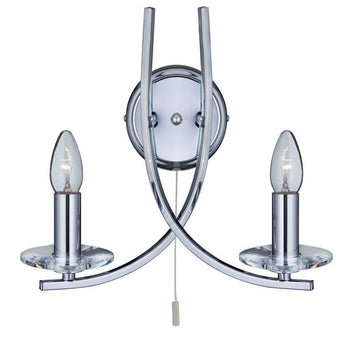 - Ascona 2 Light Chrome Wall Light With Clear Glass Sconces