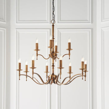 Sold out - Stanford 12 Light Antique Brass Finish Chandelier