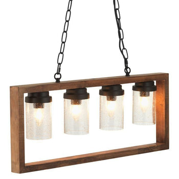 - Folke 4 Light Wooded Frame Ceiling Pendant - Glass Shades