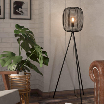Sold out - Eglo Romazzina Black Tripod Floor Lamp - Caged Lampshade