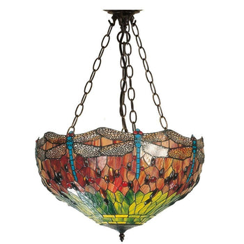 - Flame Dragonfly Inverted Tiffany Ceiling Light