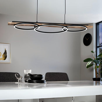Sold out - Eglo Boyal LED 3 Circle & Pine Wood Ceiling Pendant