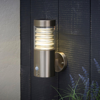 Sold out - Louvre Brushed Stainless Steel Outdoor Wall Light With PIR