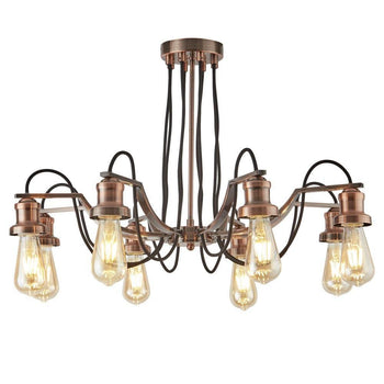 - Olivia 8 Light Copper Pendant Ceiling Light - Braided Cable