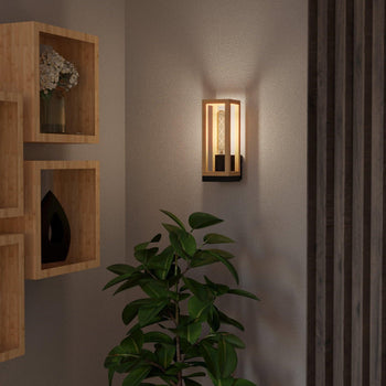 - Eglo Nafferton Black & Wooded Framed Wall Light