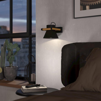 Sold out - Eglo Tudons Black & Wooden LED Wall light