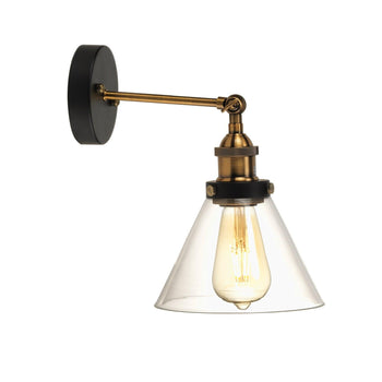 - Aken Black & Gold Adjustable Wall Light - Conical Glass Shade