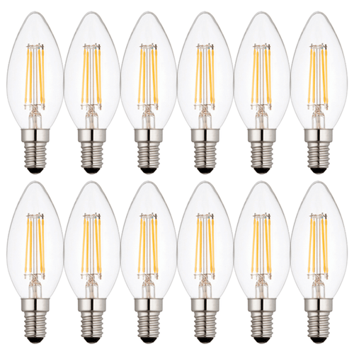12 x E14 LED Dimmable Lamp/Bulb Candle Filament 4W (25W Equivalent)
