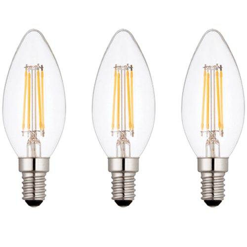 3 X E14 LED Dimmable Lamp/Bulb Candle Filament 4W (25W Equivalent)