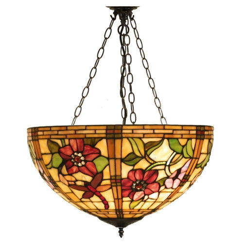 This range features two iconic images of lighting, the dragonfly and the poppy. Hand cut pieces of art glass are crafted to make this beautiful Large Inverted Ceiling Pendant Light. The fully adjustable chain allows you to fit this perfectly to your home. The Pavot range includes a wide choice of ceiling light options, as well as a wall light, floor lamp, and a choice of table lamps.