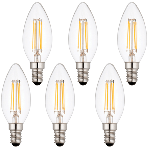 6 x E14 LED Dimmable Lamp/Bulb Candle Filament 4W (25W Equivalent)