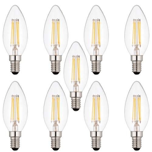 9 x E14 LED Dimmable Lamp/Bulb Candle Filament 4W (25W Equivalent)