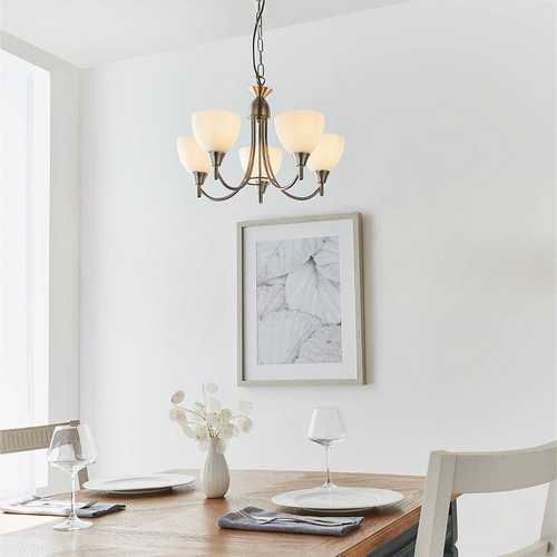 The satin chrome finish and opal white glass shades are more than just beautiful—they're a statement of timeless elegance. The sleek design adds a touch of modernity while maintaining a classic appeal, making it the perfect addition to both contemporary and traditional interiors.