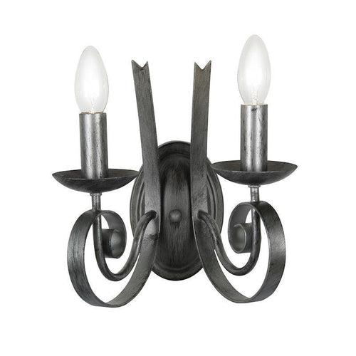 The Arundel 2 Light Silver Brushed Black Wall Light adds an elegant flair to any room. This traditional candle drip design crafted with a brushed black finish provides an eye-catching look, perfect for your living room, dining room, hallway, office or study. Add a touch of sophistication to your space with this timeless 2-light wall light.