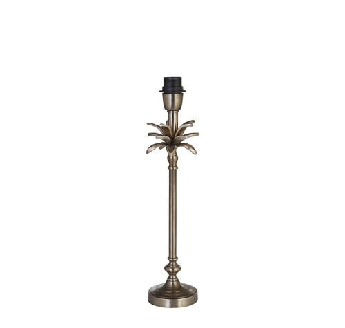 The Palm Table Lamp Base combines timeless design with functional features, making it an ideal choice for any interior. With its antique nickel colourway, this captivating lamp effortlessly complements both traditional and contemporary decor, adding a touch of tropical charm to your space. The palm tree feature on the lamp base instantly creates a relaxed and vacation-like atmosphere. It evokes a sense of tranquillity and escape, bringing a beachy vibe into your interior. Paired with one of our velvet lamp shades, you can create a unique lamp for any living space. Not only does the lamp base add visual interest, but it also becomes a captivating focal point in the room. Its intricate details and artistic design make it an eye-catching and decorative piece that enhances the overall aesthetics of your decor. Designed to be paired with ne of our range of velvet shades to create a unique table lamp, this base will add the perfect finishing touch to any room.