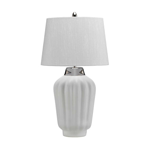 Elevate your living room or bedroom with the Bexley White & Polished Nickel Table Lamp—a sophisticated blend of simplicity and elegance. The polished nickel metal cap and subtle ribbed detailing add a touch of refinement, while the light ivory faux silk tapered shade with a silver laminate lining creates a soft, inviting glow. (Shade reference: LSUK037.) Shop with confidence from the UK’s leading lighting specialists and enjoy free 90-day UK returns.
