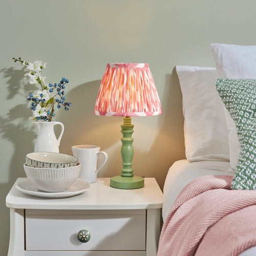 Bibury Green Table Lamp & Ikat 20cm Coral Pink Shade