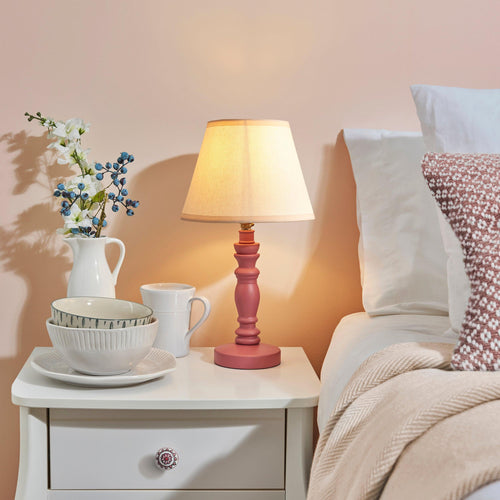 Bibury Pink Table Lamp & Ivy 20cm Vintage White Shade
