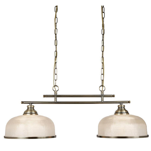 Bistro II 2 Light Brushed Brass Ceiling Bar Pendant Holophane Glass Shades