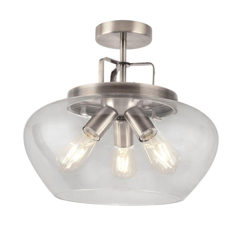 Boule 3 Light Silver Semi-Flush Ceiling Light - Glass Shade