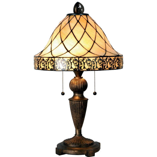 Beautiful cream art glass is cut into the classic leaded lights pattern that is seen so much in homes across the UK. This Tiffany Table Lamp comes with 2 x E27 60w bulbs and will be a terrific source of light. The Cambridge Tiffany range includes a choice of ceiling lights, wall lights, floor lamps and table lamps, all in the same stunning design.