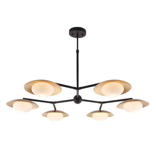Carlton Xl 6 Light Black & Gold Semi Flush - Opal Glass Shades