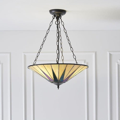 The Dark Star Inverted Pendant is a stunning take on Art Deco Lighting, beautifully crafted with the finest Art Glass, this pendant is equipped with 3 x E27 60W bulbs holders and is fully compatible with LED bulbs.