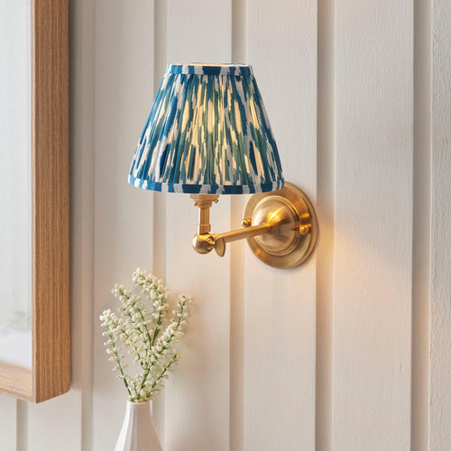 Dome Wing Brass Wall Light & Ikat 16cm Marlin Blue Shade