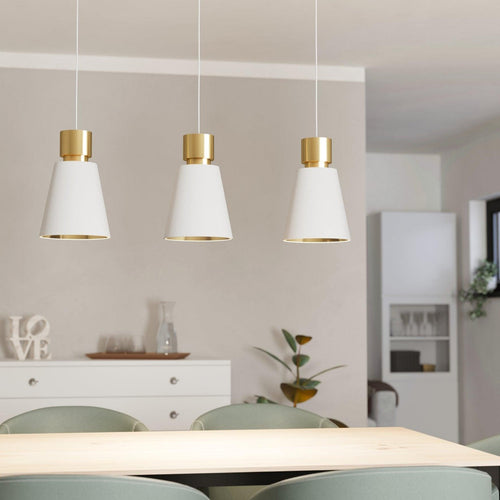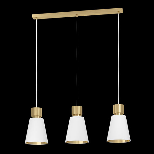 Eglo Aglientina 3 Light Brass & White Fabric Shade Pendant