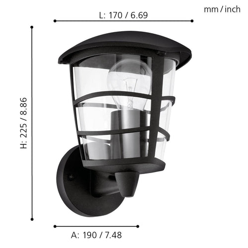 Eglo Aloria Black IP44 Upright Lantern Outdoor Wall Light