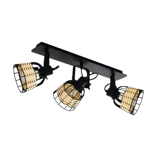 Eglo Anwick 1 Black & Rattan 3 Light Spotlight