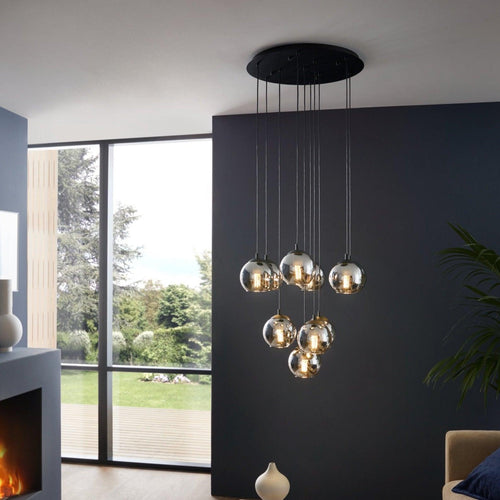 Eglo Ariscani Black & Steel Vaporised Glass 10 Light Pendant