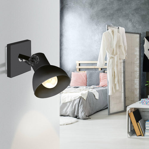 The BARNSTAPLE 1 wall light is made from black metal with an adjustable black lamp head. With the monochrome design, the product blends seamlessly into modern and industrial-style interiors. The pivoting head allows you to adjust the light to accentuate individual areas of the room, whether in the living room, the bedroom, the hallway or the dining room. The product requires 1 E27 lightbulb that is not included.