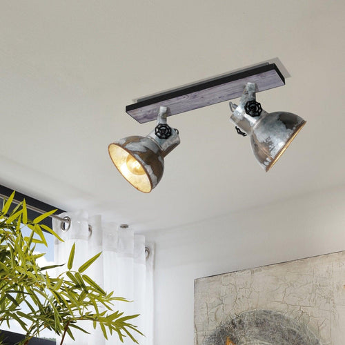 Eglo Barnstaple Wood & Distressed Steel 2 Light Bar Spotlight