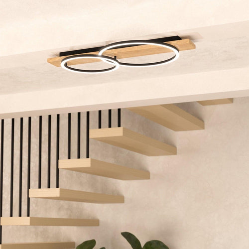 Eglo Boyal Oak Wood Veneer 2 Circular LED Flush Ceiling Light